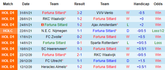 Phong độ gần đây của 2 đội không có sự khác biệt quá nhiều. Cả 2 cùng thắng 3/5 vòng vừa qua nhưng nếu như Fortuna Sittard thua 2 trận còn lại thì Heracles Almelo có 1 trận hòa. Fortuna Sittard có ưu thế hơn ở trận này nhờ được chơi trên sân nhà.