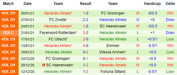 + Thống kê 10 trận gần nhất của Heracles Almelo