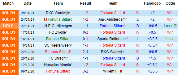 + Thống kê 10 trận gần nhất của Fortuna Sittard