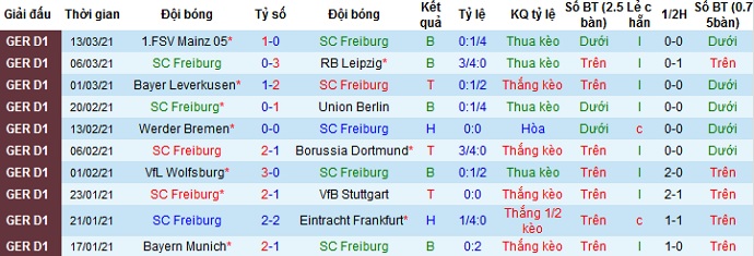 + Soi tỷ lệ kèo châu Á: Đứng trên đối thủ ở bảng xếp hạng đồng thời được thi đấu trên sân nhà nên Freiburg được đánh giá là đội cửa trên cũng là hợp lý với kèo chấp đang là -0,5.