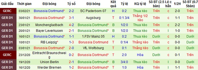 Trong 5 trận gần đây Borussia Dortmund chỉ thắng được 2 trận, hòa 1 và để thua 2 bao gồm cả trận thắng tại cúp quốc gia mới đây. Ở trận đấu này Borussia Dortmund cũng phải rất vất vả để vượt qua đội bóng hạng nhì Paderborn bằng bàn thắng của Haaland trong hiệp phụ sau khi để đối phương cầm hòa 2-2 trong hiệp chính.