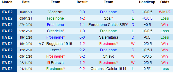 + Lịch sử đối đầu Frosinone vs Reggina