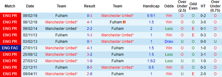 Xa hơn, trong vòng 10 lần chạm trán Fulham từ năm 2011, Man United bất bại với 9 chiến thắng và 1 trận hòa. 4 lần gần đây làm khách trên sân của Fulham, Quỷ đỏ toàn thắng, ghi 12 bàn và chỉ 1 lần để thủng lưới. Tuy nhiên ở trận đấu sắp tới Fulham lại được tin tưởng sẽ gây ra nhiều khó khăn cho đối thủ.