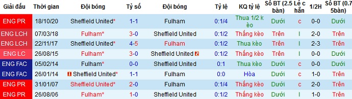 + Lịch sử đối đầu Fulham vs Sheffield United