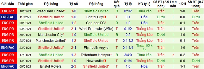 + Thống kê 10 trận gần nhất của Sheffield United