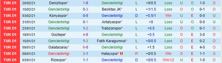 + Thống kê 10 trận gần nhất của Genclerbirligi