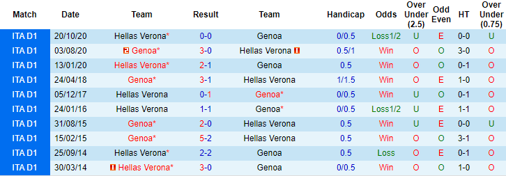 Dẫu vậy, ở trận đối đầu sắp tới, Genoa vẫn được tin tưởng vào khả năng giành chiến thắng. Trước hết, Genoa có được sự tự tin nhờ thành tích đối đầu thuận lợi. 2 lần chạm trán Hellas Verona gần đây họ thắng 1, hòa 1. 5 lần trước đó tiếp đón Hellas Verona trên sân nhà, Genoa toàn thắng cả về tỷ số và kèo châu Á.