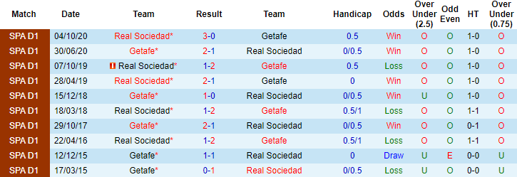 Sân nhà của Getafe vẫn đang là nỗi ám ảnh của Sociedad. Trong vòng 3 lần tiếp đón Sociedad gần đây tại "tổ ấm" của mình, Getafe toàn thắng cả về tỷ số và kèo châu Á. Tuy nhiên ở trận đấu sắp tới, Getafe lại không hứa hẹn vào khả năng có điểm. Trên sàn giao dịch châu Á, kèo chính cả trận đã đổi từ 1/4:0 sang mức 1/2:0 trước giờ bóng lăn.