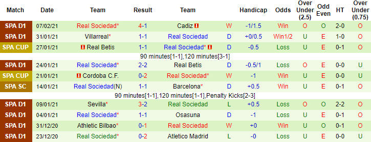 + Thống kê 10 trận gần nhất của Sociedad