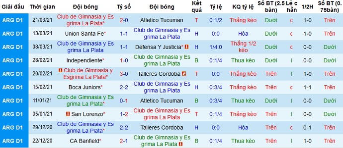 So về phong độ, Gimnasia La Plata còn có phần kém hơn đối thủ khi chỉ có được 2 trận thắng, 2 trận hòa và 1 trận thua ở 5 trận gần nhất. Ngay cả trên sân nhà thành tích của Gimnasia La Plata cũng hoàn toàn tương tự, cho dù đang bất bại ở 3 trận gần nhất tại đây.