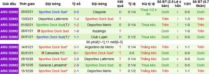 + Thống kê 10 trận gần nhất của Dock Sud