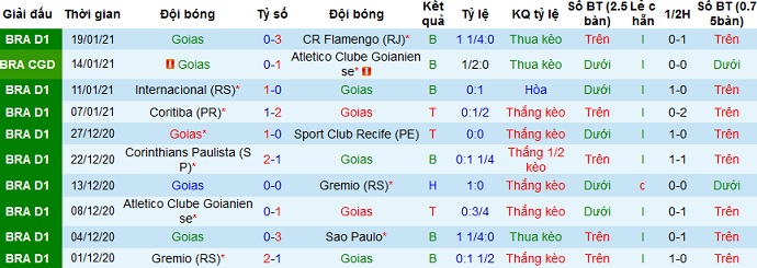 Trong 5 trận gần nhất Goiás chỉ có được 2 trận thắng, để thua 3 trận bao gồm cả trận thua Goiano 1. Ngay cả trên sân nhà thành tích của Goiás cũng không tốt hơn với 1 trận thắng, 1 trận hòa và 3 trận thua trong 5 trận gần nhất tại đây.