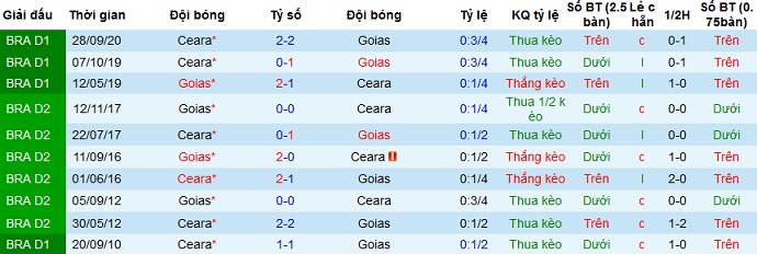 + Soi tỷ lệ kèo châu Á: Mặc dù được chơi trên sân nhà nhưng với phong độ yếu kém cũng như vị thế của đội đứng áp chót bảng xếp hạng nên Goiás vẫn bị đánh giá là đội cửa dưới tuy kèo chấp chỉ là +0,25. Thế nhưng với phong độ du đấu rất tốt của Ceará thì có thể ngay cả 1 điểm đội chủ nhà cũng khó có thể có được.
