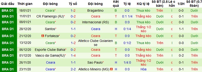 Tuy nhiên phong độ của Ceará vẫn khá thất thường. Ở 5 trận gần nhất Ceará có được 2 trận thắng, hòa 1 và để thua 2 trận. Thế nhưng thành tích trên sân khách của Ceará lại rất tốt khi bất bại ở cả 5 trận du đấu gần nhất, trong đó có tới 4 trận thắng.