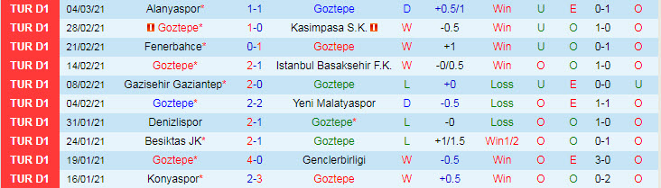 + Thống kê 10 trận gần nhất của Goztepe Izmir
