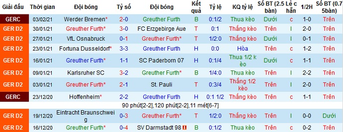 + Thống kê 10 trận gần nhất của Greuther Fürth