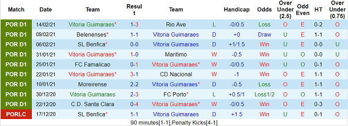 Guimaraes không có được những kết quả tích cực trong thời gian vừa qua. Họ không thắng cả 3 vòng gần nhất: hòa 2, thua 1. Thành tích này kém ấn tượng hơn đáng kể so với việc giành 9 điểm tối đa từ 3 vòng trước đó.