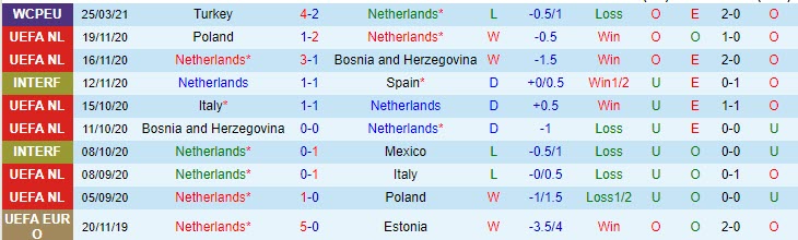+ Thống kê 10 trận gần nhất của Hà Lan