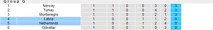 Trở lại với lượt trận thứ 2 tại vòng loại, Hà Lan trở về sân nhà để tiếp đón đội bóng lót đường Latvia và đây sẽ là cơ hội tốt để họ tìm lại cảm giác chiến thắng. Nên nhớ, Latvia không có tâm lý thi đấu quá tốt khi vừa để thua 1-2 trước Montenegro ngay trên sân nhà ở trận mở màn cách đây ít ngày.