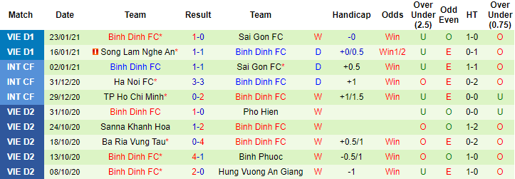 Hai trận đã đấu tại V-League 2021, đoàn quân của HLV Nguyễn Đức Thắng hòa SLNA 1-1 trên sân Vinh và thắng Sài Gòn FC với tỷ số 1-0. Tính từ tháng 7/2020, đội bóng đất Võ đã có chuỗi 15 trận bất bại liên tiếp tính trên mọi đấu trường, thành tích cụ thể của họ là 10 chiến thắng và 5 trận hòa.