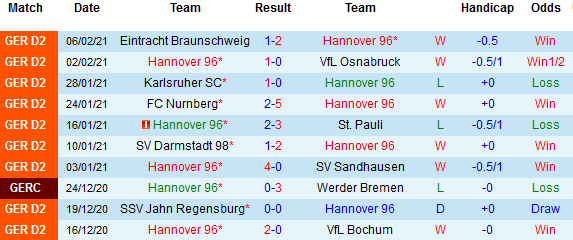 + Thống kê 10 trận gần nhất của Hannover