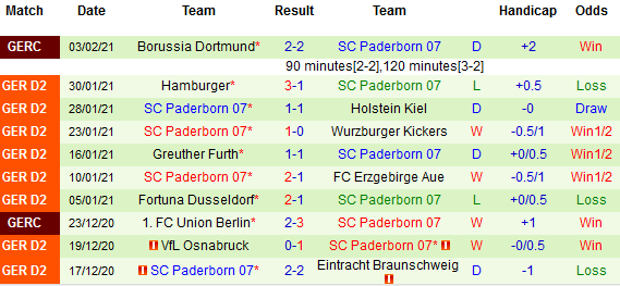 + Thống kê 10 trận gần nhất của Paderborn