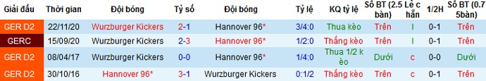 + Lịch sử đối đầu Hannover vs Würzburger Kickers