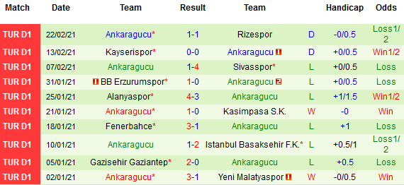 + Thống kê 10 trận gần nhất của Ankaragucu