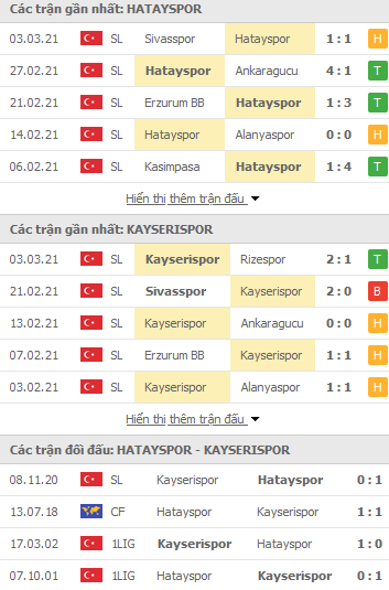 Phong độ và thống kê đối đầu gần đây Hatayspor vs Kayserispor: