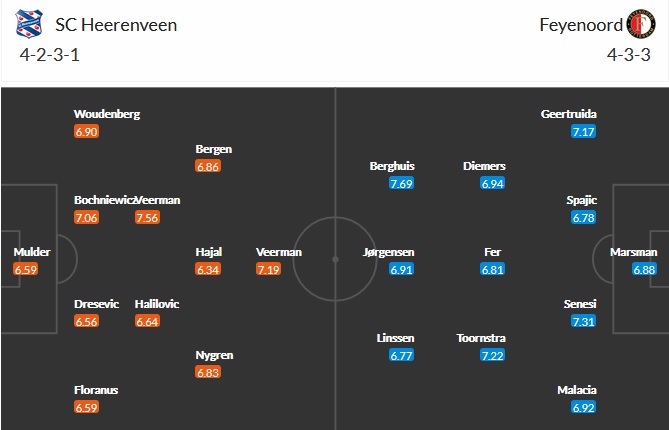 Đội hình dự kiến Heerenveen vs Feyenoord
