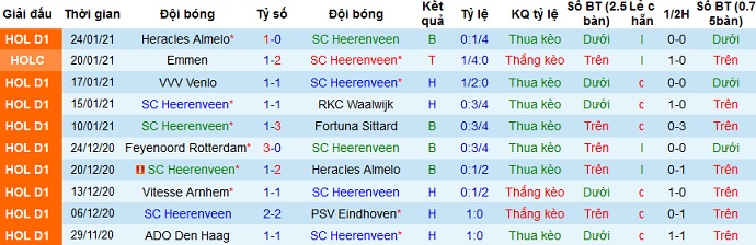 + Thống kê 10 trận gần nhất của Heerenveen