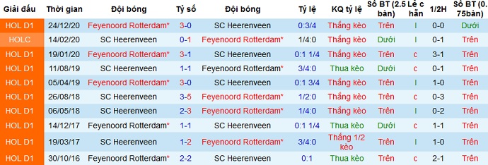 + Lịch sử đối đầu Heerenveen vs Feyenoord