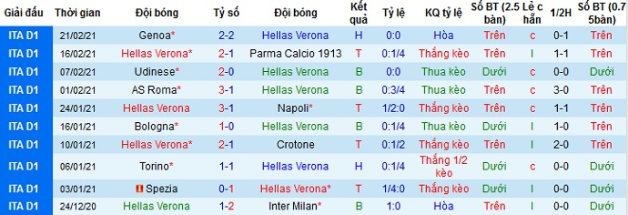 + Thống kê 10 trận gần nhất của Hellas Verona