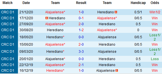 + Soi tỷ lệ kèo châu Á: Thành tích đối đầu gần đây đang nghiêng hẳn về phía Alajuelense khi họ toàn thắng cả 4 trận gần nhất. Đây là thời điểm mà Herediano đã sa sút quá nhiều với 6 trận gần đây toàn thua kèo châu Á.