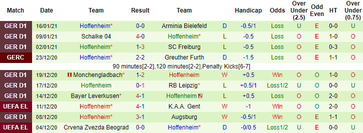 + Thống kê 10 trận gần nhất của Hoffenheim