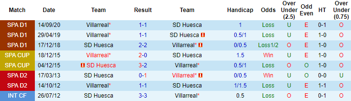 Phong độ và thống kê đối đầu Huesca vs Villarreal