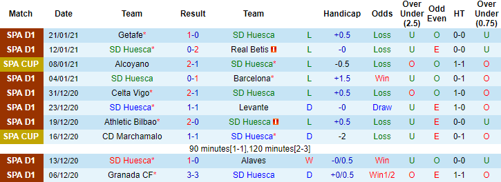 + Thống kê 10 trận gần nhất của Huesca