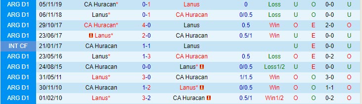 Phong độ và thống kê đối đầu Huracan - Lanus gần đây: