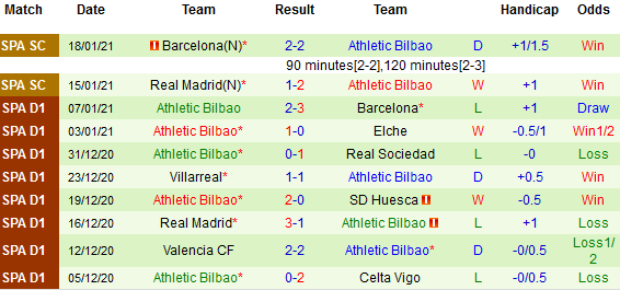 + Thống kê 10 trận gần nhất của Bilbao