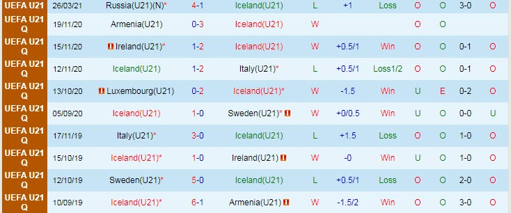 + Thống kê 10 trận gần nhất của Iceland U21
