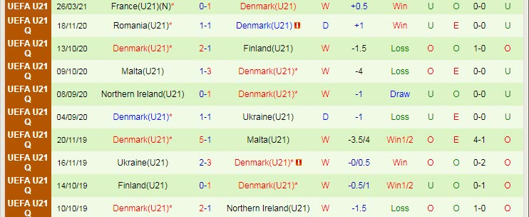 + Thống kê 10 trận gần nhất của Đan Mạch U21