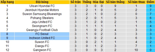 Sau 3 vòng đầu tiên của giải vô địch quốc gia Hàn Quốc K-League, cả Incheon United và FC Seoul đều mới có được 3 điểm và đang đứng sát nhau ở bảng xếp hạng. FC Seoul tạm đứng trên ở vị trí thứ 8 do hơn về hiệu số bàn thắng.
