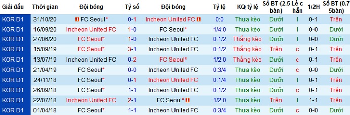 Tuy nhiên chính Incheon United mới là đội giành chiến thắng trong cả hai lần đối đầu gần nhất. Ngoài ra phong độ của FC Seoul cũng đang rất tệ, nhất là trên sân khách nên chọn cửa dưới ở trận đấu này là hoàn toàn hợp lý.