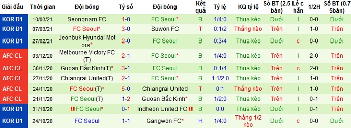 + Thống kê 10 trận gần nhất của FC Seoul