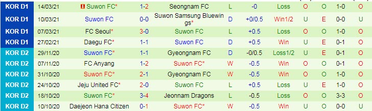 + Thống kê 10 trận gần nhất của Suwon