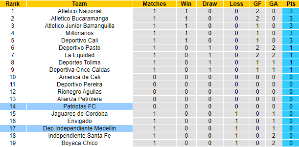 Independiente Medellin khởi đầu giải VĐQG Colombia mùa này không được thuận lợi. Cụ thể, họ để thua với tỷ số 0-1 trong chuyến làm khách trên sân của Junior Barranquilla hôm 17/1 vừa qua. Thế nhưng ở vòng 2 sắp tới, Independiente Medellin vẫn nhận được nhiều sự tin tưởng.