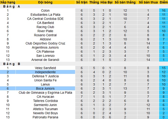 Trong khi đó Boca Juniors chỉ đang đứng thứ 6 trên bảng xếp hạng của bảng B. Với 9 điểm có được sau 6 vòng đấu, Boca Juniors chỉ đang kém Top 4 đúng 2 điểm nhưng đồng thời thi đấu ít hơn 1 trận.