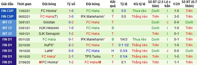+ Thống kê 10 trận gần nhất của FC Haka