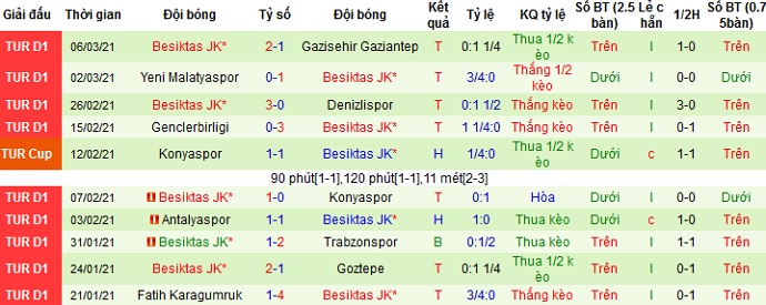 + Thống kê 10 trận gần nhất của Besiktas