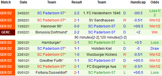 + Thống kê 10 trận gần nhất của Paderborn